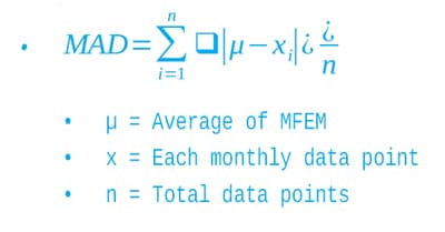 - Monthly absolute deviation (MAD): This denotes a variation of the feature absolute deviation calculated at the end of every month. It quantifies the amount of variation in the monthly feature effectiveness measure (MFEM) values from the mean. MAD is instrumental in assessing the monthly variability of the feature’s effectiveness. To calculate MAD, the formula involves finding the absolute difference between each monthly MFEM data point (x) and the average of the monthly MFEM values (µ). The absolute differences are summed and divided by the total number of data points (n) to obtain the monthly absolute deviation.
