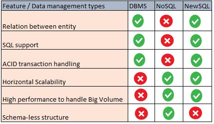 First generation database systems (e.g., Oracle, MySQL) have a lot of flexibility in terms of developer access for querying and accessing/interpreting the data as compared to second generation (NoSQL) database systems like Hadoop and MongoDB. On the other hand, second generation database systems are designed to address the limitations of RDBMS in terms of handling volume and multi-branched structural data. To cater to online transaction processing (OLTP) of first generation databases and the structural accessibility for large volume data handled by second generation database systems, hybrid database systems called NewSQL have emerged as third generation database systems.