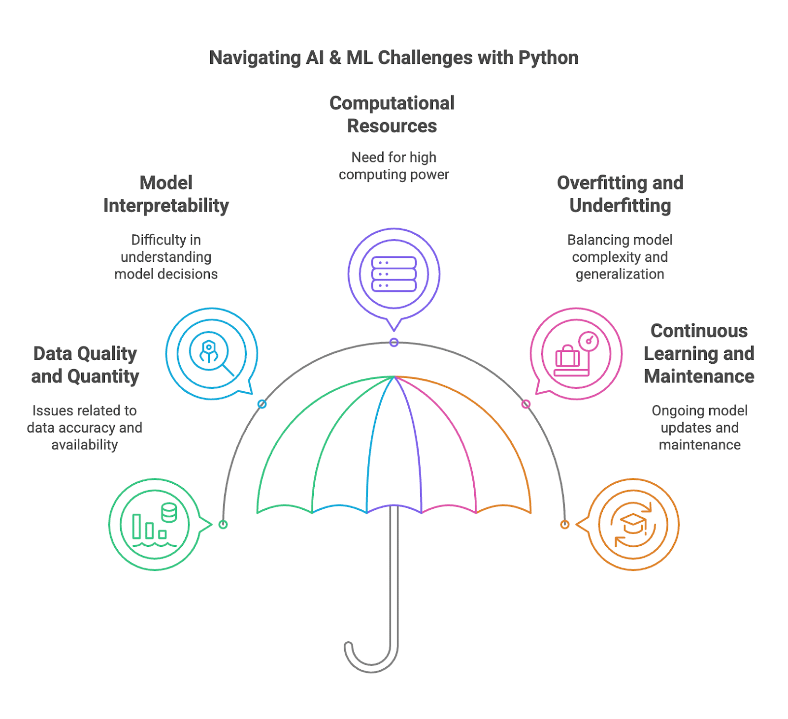 Even though Python boasts a strong ecosystem for AI and ML, there are still issues that developers and data scientists must contend with while operating with it. The identification of these issues is the first step towards solving them and creating more effective systems.