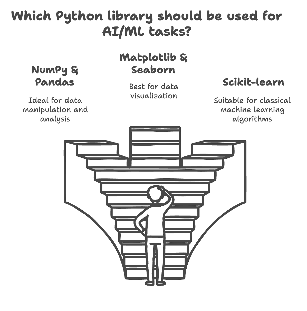 Python’s rich collection of libraries is one of the principal reasons for its prevalence in AI and ML. The libraries make intricate operations easier, allowing developers to create strong models effectively.