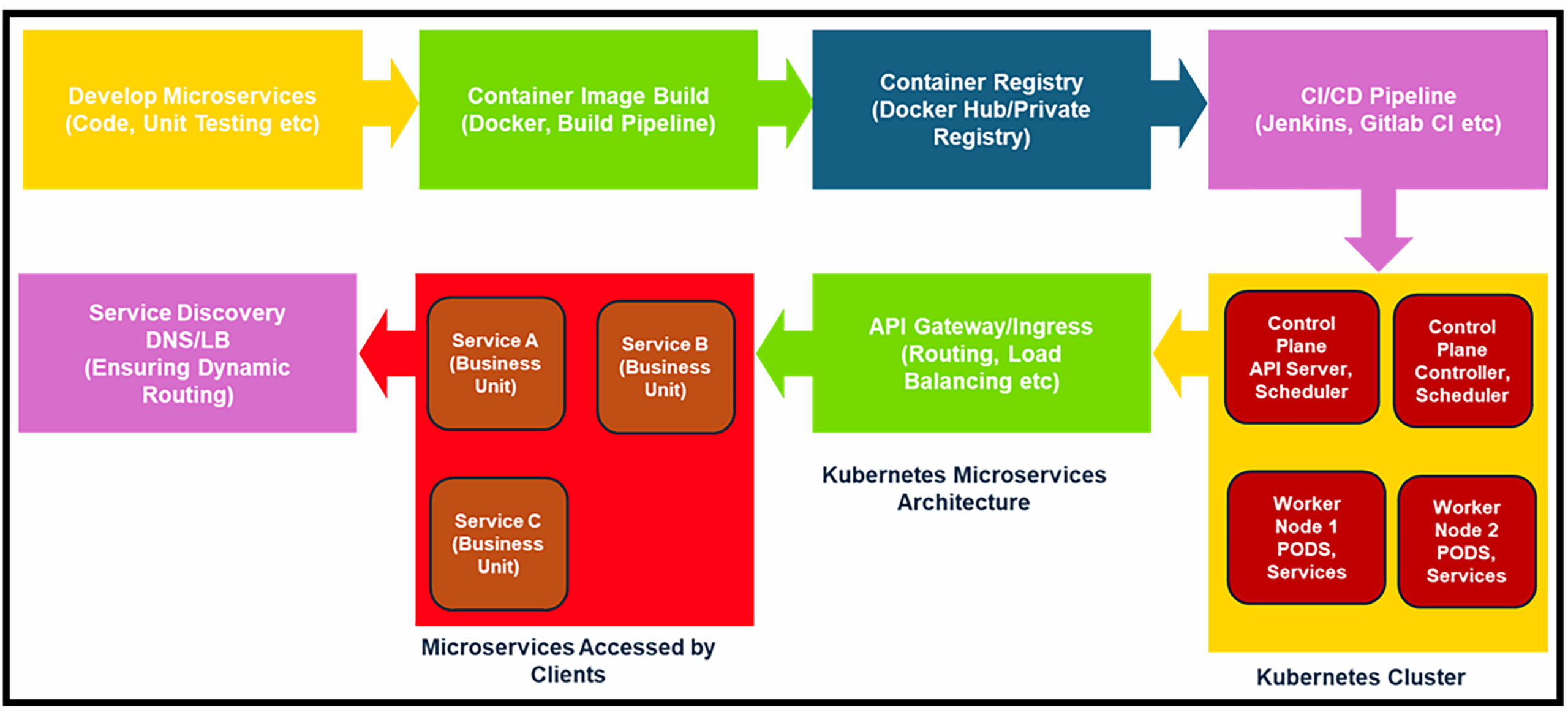 Here’s how microservices deployment flows from development through containerisation to deployment in a Kubernetes cluster (Figure 3):
