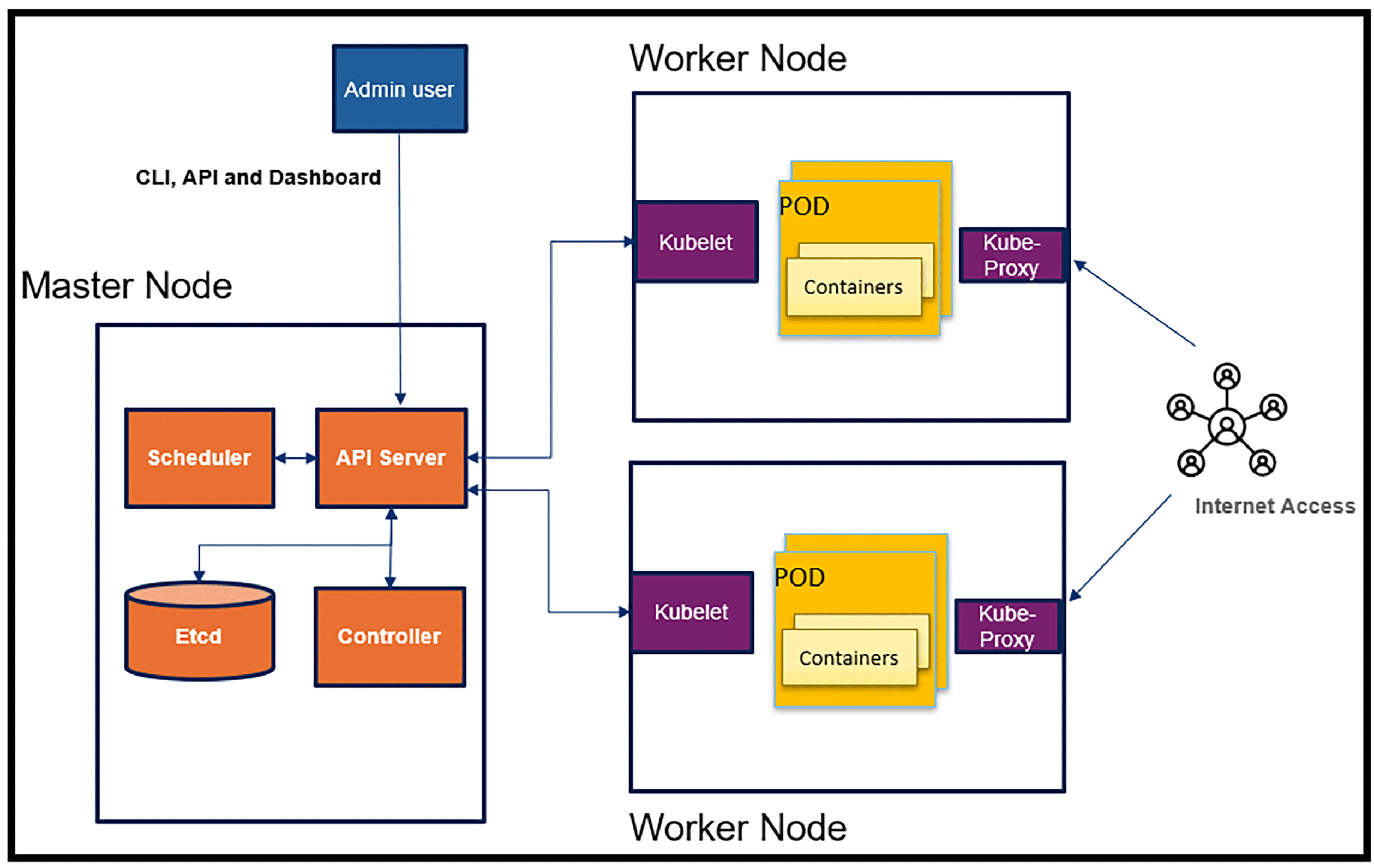 Control plane and worker nodes: The cluster’s control plane (with API servers, schedulers, etc) handles orchestration while worker nodes host the actual application pods.