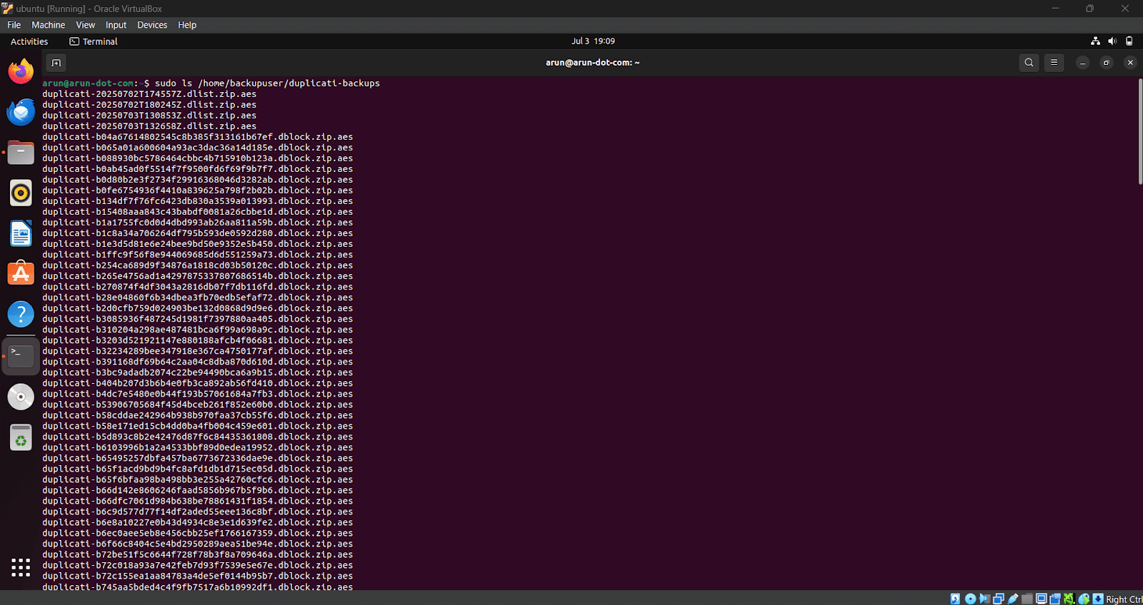 $ cd /home/backupuser/duplicati-backups $ ls -lh