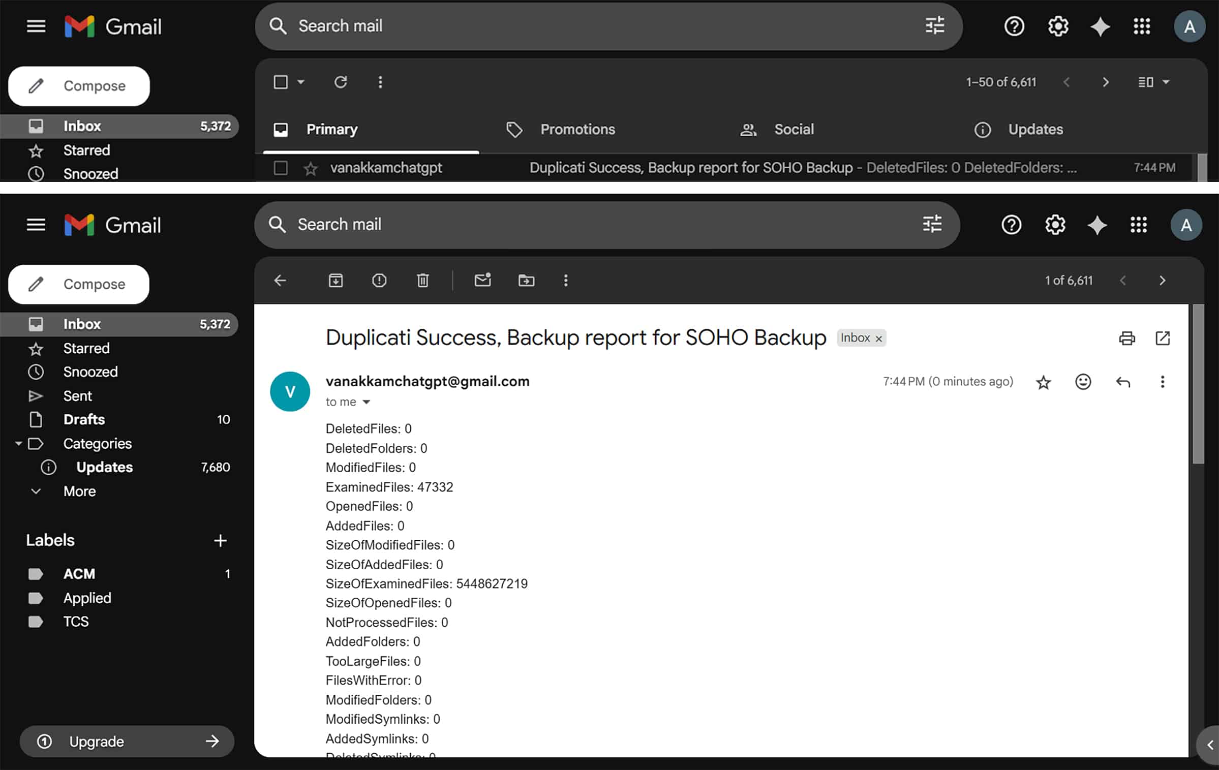 With this setup, Duplicati will automatically send an email report after every operation, helping you stay informed about the health and success of your backup system.