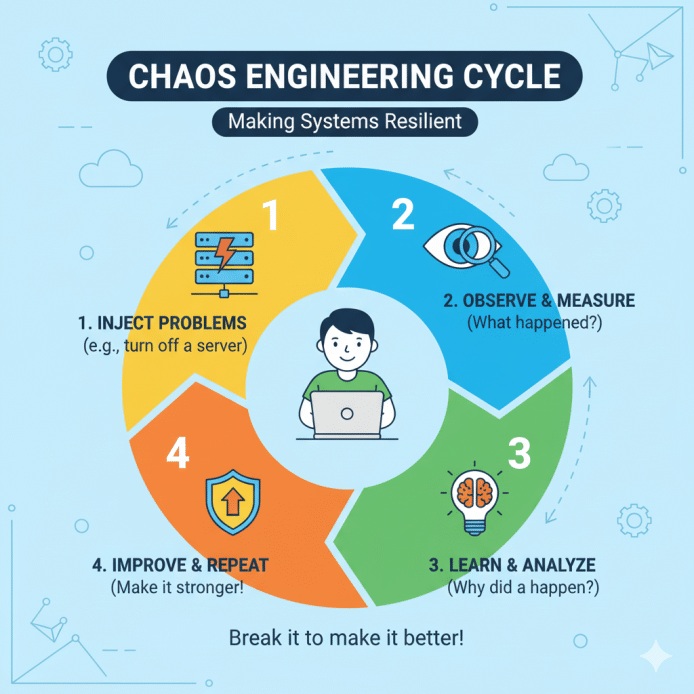 | Cloud tools | LitmusChaos, Chaos Mesh, Gremlin | Run controlled failures, improve system reliability |