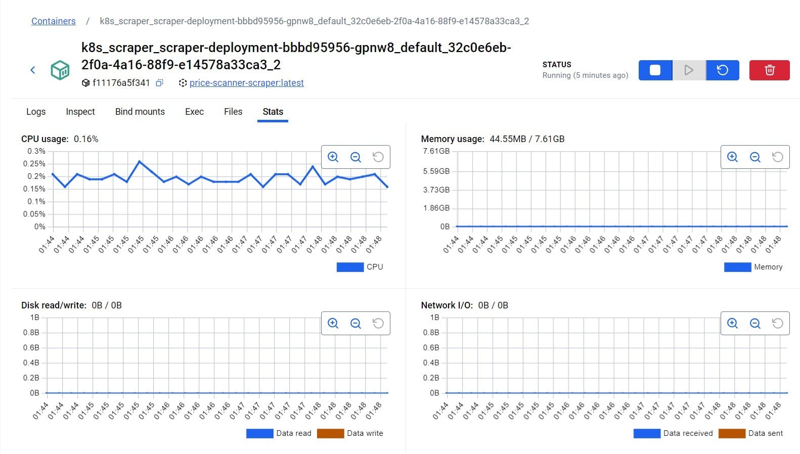 FastAPI logging middleware and Docker stdout streams were used for runtime logging. Each scraper logged execution time, item count, and errors. Backend logs included HTTP status codes and timestamps. Kubernetes tools provided insights into pod states, CPU/memory usage, and deployment health (Figure 6).