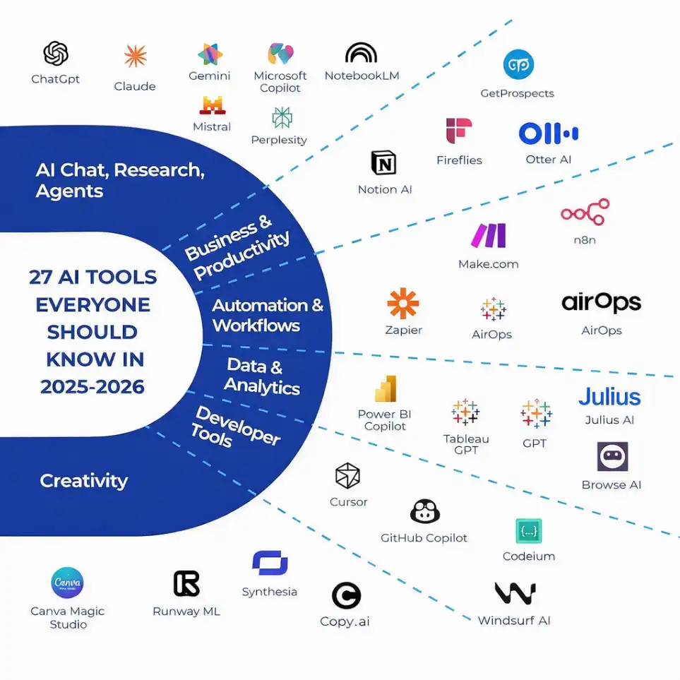 Figure 1 highlights a broad ecosystem of AI tools that can be explored for different academic and professional tasks. It shows how AI is being used across areas such as research support, automation, productivity, analytics, and creative work. Rather than focusing on a single tool, the image encourages us to become aware of the available landscape and explore tools that align with our workflows and requirements. This overview is meant to support informed decision-making when adopting AI in practical scenarios.
