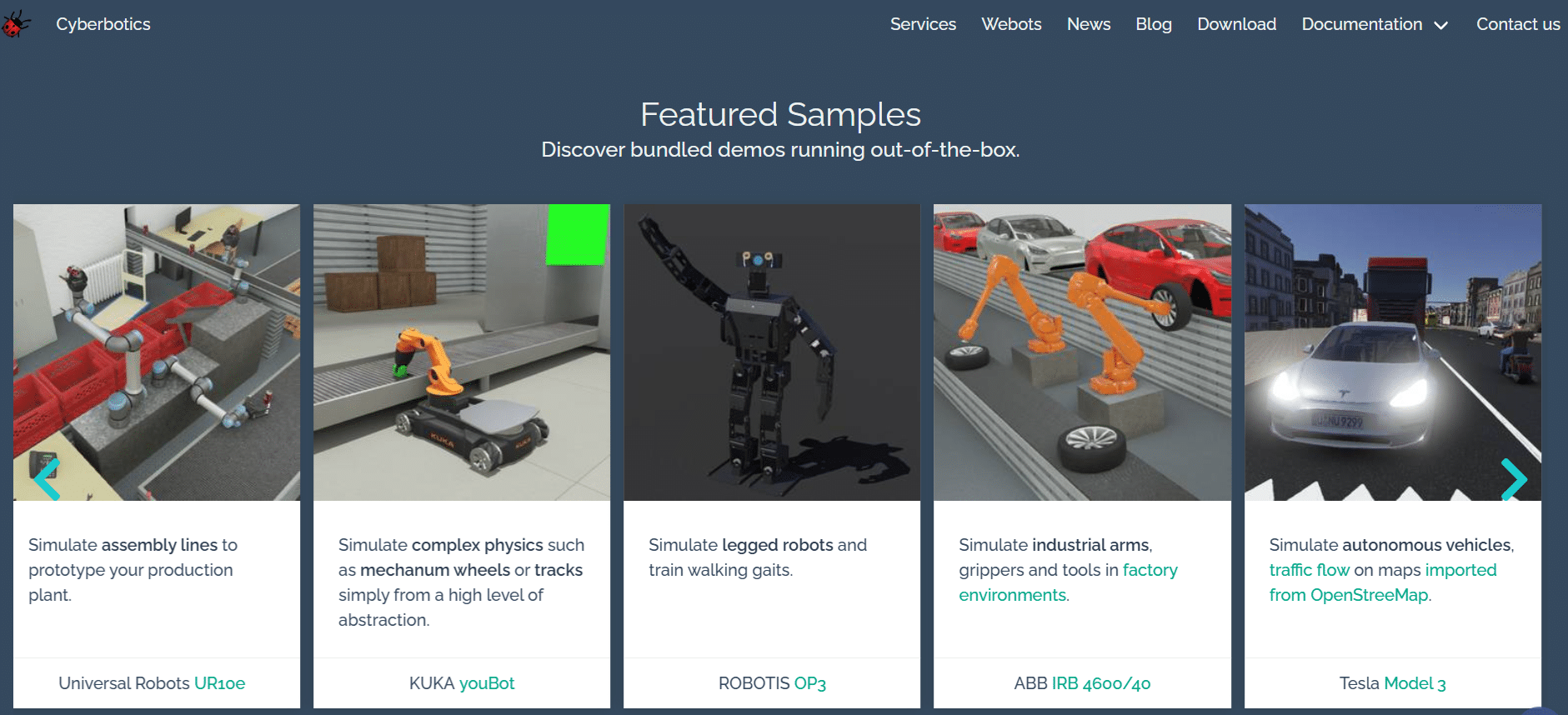 Bundled demos and samples on Webots
